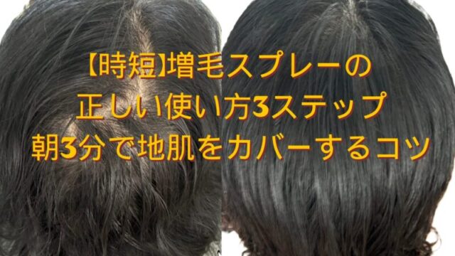 薄毛対策・習慣 【時短】増毛スプレーの正しい使い方3ステップ|朝3分で地肌をカバーするコツ 2026年3月31日 あゆう 「朝、寝坊した……!でも、このまま(ハゲた状態)では絶対に行けない!」 あなたならどうしますか? 鏡の前で途方に暮れる時間は1秒もあ …
